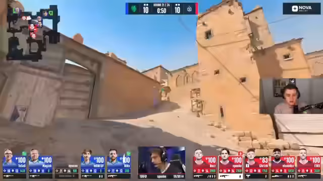 03:48:33Nach dem Abschluss der ersten Map wechselt das Spiel zur zweiten Map. Es wird offiziell bekannt gegeben, dass Dust2 die Wahl von FaZe Clan ist. Der Streamer bereitet die Zuschauer auf einen neuen Spielverlauf vor, da sich die Dynamik durch die Map-Wahl ändern kann. Die Stimmung ist gespannt, da FaZe nun auf einen Ausgleich drängen muss, um ihre Chancen in der Serie aufrechtzuerhalten. Es wird eine kurze Pause für Werbung angedeutet, bevor das Spiel auf Dust2 fortgesetzt wird.