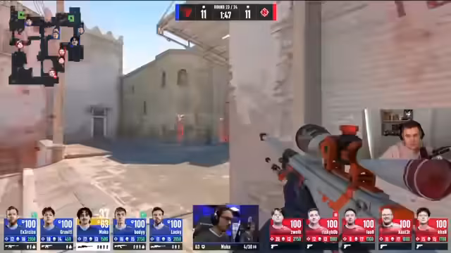 06:49:19In der ersten Map kämpfen die Teams um jeden Punkt. Der Streamer ist beeindruckt von einem besonders lauten und emotionalen Auftreten von Armin. Die Spannung steigt, als OG in Geldnot gerät, was eine Entscheidung für eine starke Ausrüstung in der nächsten Runde erfordert. Eine Schlüsselrunde wird als besonders wichtig für den Spielverlauf eingestuft, während der Streamer die Chat-Interaktion lobt und den Pick'ems der Zuschauer erwähnt.