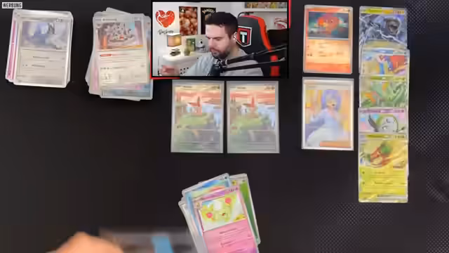 02:56:06Der Stream beginnt mit dem Öffnen von Pokémon-Packungen aus der Victini Illustration Collection. Es wird über die hohe Menge an Plastikverpackung geklagt, insbesondere bei den Promo-Karten, die in mehreren Schichten aus Plastik gehüllt sind. Dies führt zu einer Kritik an dem Umfang des Mülls, der nur für wenige Packungen erzeugt wird. Ein Highlight ist die zentrierte Victini-Karte, die aber von der unangenehmen Verpackung übertönt wird.
