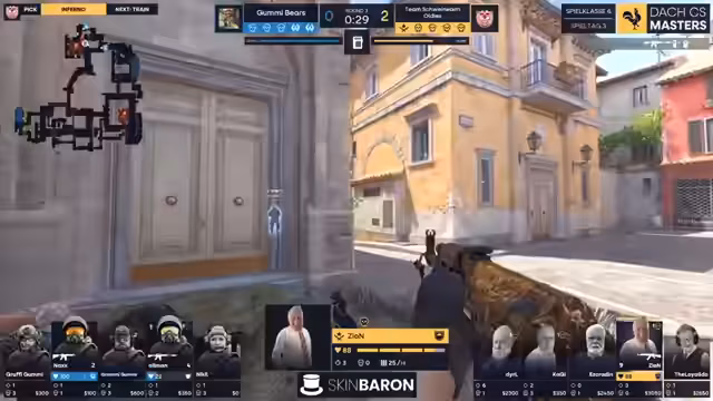 05:36:17Das Spiel entwickelt sich in Richtung spannender Einzelszenen. 'Sion' spielt eine entscheidende Rolle mit einem Side-in-Spiegel, während 'Kargi' mit einer starken 1v2 Situation auf sich aufmerksam macht. Die Runden sind geprägt von knappen Verläufen, in denen einzelne Spieler wie 'Tobi' immer wieder für Kills und Rundensiege sorgen. Kommentator und Zuschauer diskutieren über das individuelle Spielverhalten und die Entscheidungsfähigkeit der Akteure unter Zeitdruck.