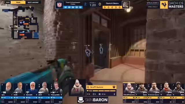 05:34:13Die Anfangsphase des Streams ist geprägt von detaillierten Analysen der Spielweise der Teams. Der Kommentator bemängelt, dass die 'Gummy Bears' zu wenig Utility einsetzen, insbesondere Flashes, und oft ohne Jute spielen, was für ein professionelles Team untypisch ist. Auch die 'Oldies' werden kritisch betrachtet, als diese mit einer AWP eine unbekannte Position besetzen und sich in einer vorteilhaften Position verlieren. Der Fokus liegt auf der taktischen Ungewissheit und der ineffektiven Nutzung von Spielmitteln.