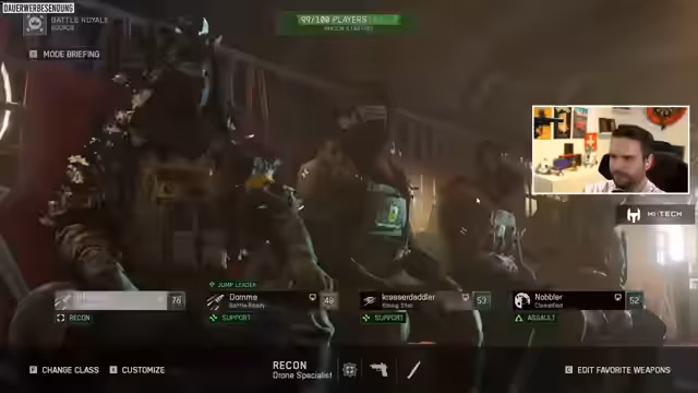 02:38:06Im Battle Royale-Modus von Battlefield Redacted wird die Recon-Klasse gewählt, da ihre Drohne Granaten abwerfen kann, was für lustige Kills sorgen soll. Die Spieler aktivieren XP-Booster, um schneller Fortschritte zu erzielen, und es wird festgestellt, dass Battlefield Pro-Besitzer doppelte Booster-Dauer erhalten. Die erste Runde beginnt mit einem Sprung zu einem sicheren Bereich, um Missionen zu erledigen und Loot zu sammeln. Die Kommunikation im Team ist entscheidend, um Gegner zu lokalisieren und sich gegenseitig zu unterstützen. Es kommt zu intensiven Feuergefechten, bei denen Artillerie-Schläge und Drohnenbomben eingesetzt werden. Trotz der Schwierigkeiten und der Notwendigkeit, schnell zu handeln, gelingt es dem Team, die Missionen erfolgreich abzuschließen. Die Recon-Drohne erweist sich als nützlich zum Spotten und für gelegentliche Bombenabwürfe. Die Spieler sind zufrieden mit der Runde und den erzielten Kills, die ihnen ein komplettes Level Up bescheren. Die Herausforderungen für die Weekly-Missionen, wie das Erreichen von 10 Sniper-Kills, werden besprochen, während die nächste Runde vorbereitet wird.