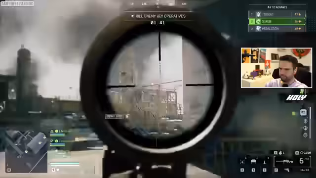 05:17:13Die Spieler diskutieren über die kommenden Weekly Challenges, die in etwa 17 Stunden verfügbar sein werden. Ein Spieler plant, auf Recon zu gehen, um Long Range Kills zu erzielen. Es wird erwähnt, dass die alten Weeklys seit dem Start von Season 1 zurückgesetzt wurden. Ein neuer Modus, bei dem 8 Teams um Punkte für Kills und Missionen kämpfen, wird ausprobiert. Die Spieler geraten in intensive Gefechte, werden oft ausgeschaltet und äußern ihren Frust über die Spielmechanik und die Gegner. Trotz der Schwierigkeiten versuchen sie, sich gegenseitig zu unterstützen und die Missionsziele zu erreichen.