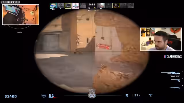 01:22:28Die Frustration über mutmaßliche Stream-Sniper nimmt zu. Der Streamer äußert, dass es okay sei, zwei bis drei Spiele am Tag zu spielen, aber gegen Stream-Sniper zu spielen, führe zu „Tilt“. Er hofft, nach dem aktuellen CS2-Match in Battlefield wechseln zu können, um dem entgegenzuwirken. Die Gegner werden als „deutsche Huren-Söhne“ bezeichnet, die offensichtlich den Stream offen haben und dadurch einen unfairen Vorteil erlangen. Trotz dieser Schwierigkeiten versucht das Team, die Spiele zu gewinnen. Die Kommunikation im Team wird intensiver, um die Gegner zu überlisten, die scheinbar genau wissen, wo sich die Spieler befinden und welche Strategien sie verfolgen. Nach mehreren Runden, die von dieser Frustration geprägt sind, wird angedeutet, dass der Streamer das aktuelle Spiel beenden und zu Battlefield wechseln möchte. Er muss noch seine Waschmaschine entleeren und die Spülmaschine überprüfen. Eine kurze Pause wird angekündigt, um diese Dinge zu erledigen.