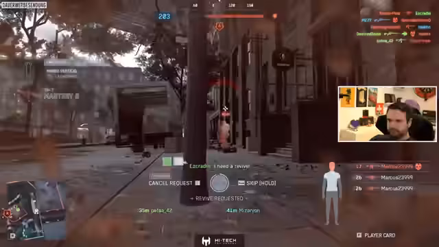 04:19:05Auf dem Battlefield 6 Server erleben der Streamer und seine Mitspieler eine angespannte und frustriernde Conquest-Runde. Sie werden aus dem Spawn heraus permanent von Snipern attackiert und verlieren schnell wichtige Zonen wie Delta. Es herrscht große Verwirrung über die Squad-Anführer-Funktion und das Teamplay funktioniert nur eingeschränkt. Viele Gegner nutzen laut Streamer Aggressionen und unfaire Taktiken, was den Spaß am Spiel stark beeinträchtigt.