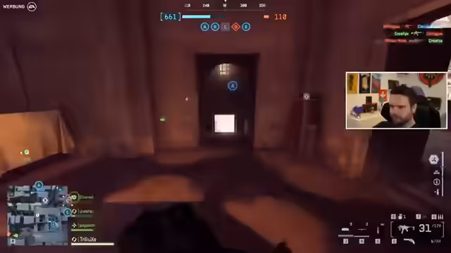 04:13:15Während des Streams bewertet der Streamer die Performance des Spiels positiv. Er ist beeindruckt, dass er auf seinemselben PC, auf dem er andere Spiele mit höherer FPS-Zahl zockt, in Battlefield 6 mit allen Effekten konstant 150 FPS erreicht. Das Gameplay beschreibt er als intensiv und kritisiert die absurd kurze Time to Kill bestimmter Waffen, insbesondere der SGX. Er diskutiert auch die Grafikeinstellungen und das Gefühl der Spielmechaniken in verschiedenen Modi.