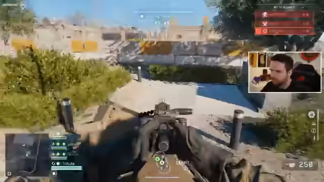 05:32:50Obwohl das eigene Team in der Mehrzahl ist, gerät es in einen Rückstand, weil die Gegner strategisch vorgehen und das Spawn-Campen ausschalten. Der Streamer stellt sein Gameplay auf den Kopf und ignoriert oft seine Kill/Death-Ratio, um als Medic das Team zu unterstützen. Er spielt dreckig, z.B. indem er von hinten angreift, da er mehr Impact für das Team erzielen möchte, auch wenn es bedeutet, dass er selbst stirbt.