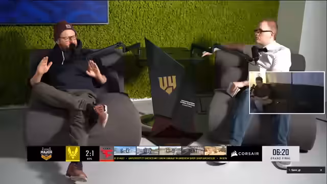 07:28:31Trilluxe und Segalson erklären den Sinn ihrer gemeinsamen Watch-Party: Sie steigern die Zuschauerzahlen für den deutschsprachigen CS-Bereich und können so besser mit Werbepartnern verhandeln. Zuschauer können an einem Gewinnspiel teilnehmen, bei dem es unter anderem ein komplettes Corsair-Bundle (Maus, Headset im Wert von ca. 200-300€), Merch-Pakete mit T-Shirts, Hoodies und Sonder editionen zu gewinnen gibt. Die Teilnahme wird ausdrücklich empfohlen.