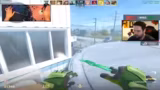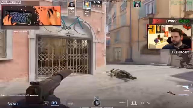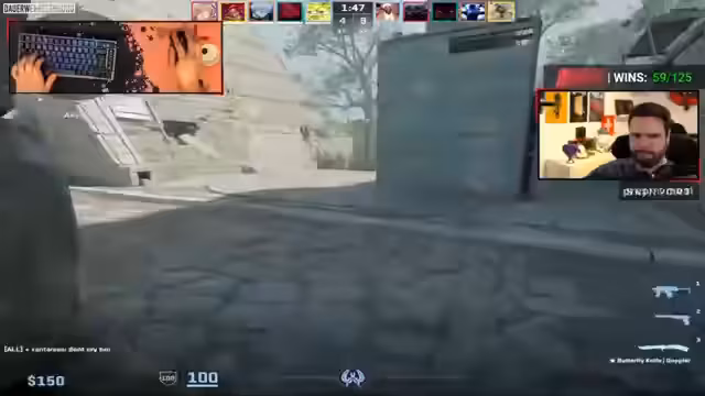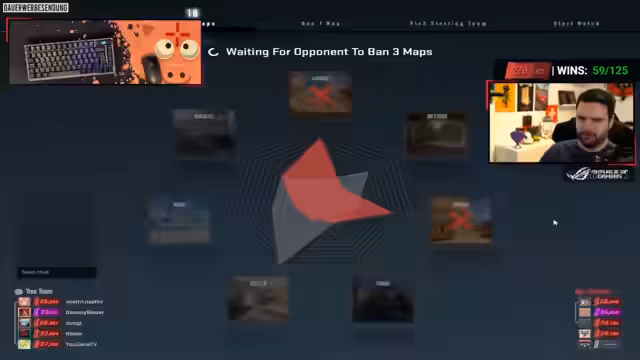 05:30:14Im Verlauf des Streams zeigt das Team eine sehr aggressive Spielweise. Es kommt häufig zu Konfrontationen auf engstem Raum, insbesondere um die Kontrolle über Schlüsselpositionen wie B und Mitte. Der Streamer äußert sich frustriert über einen Gegner, der ständig an Spawnpunkten lauert, und versucht, taktisch durch Rauchgranaten und gezielte Bewegungen das Blatt zu wenden, wobei die Aktionen oft als riskant und chaotisch beschrieben werden.