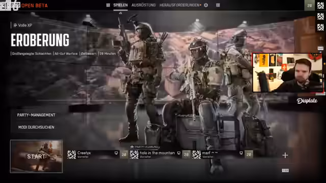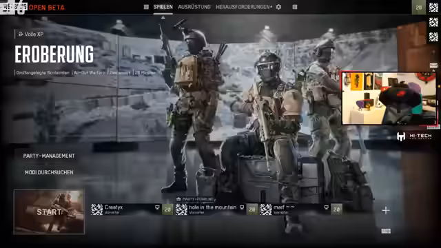 00:00:00Der Stream beginnt mit dem Battlefield 6 Grind im King of the Hill Modus. Der Streamer und sein Squad bestehend aus Marius, Creatix und Armin steigen in die Open Beta ein. Es wird über die großen Spielstunden der Teilnehmer gesprochen, die teilweise über 100 Stunden betragen, und die Vorfreude auf den anstehenden Grind wird deutlich. Probleme bei der Teamkommunikation und unkoordinierte队友, die oft AFK sind, werden als frustrierend empfunden und stellen eine erste Hürde dar.