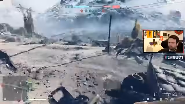 01:47:56Ein intensives Conquest-Spiel auf der Map Kings Battery wird gespielt. Der Streamer und sein Squad nehmen aktiv Punkte ein und verteidigen diese, wobei sie auf gegnerische Panzer und Infanterie stoßen. Die taktischen Manöver, wie das Nutzen von Respawn-Punkten und das explosive Vorgehen gegen feindliche Fahrzeuge, stehen im Fokus des Gefechts.