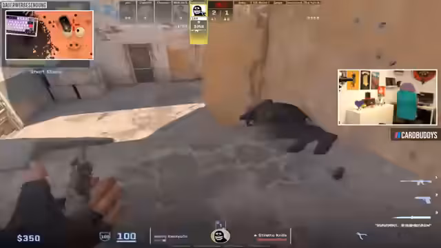 01:40:06Das Gameplay ist geprägt von aggressiven Vorstößen und strategischen Entscheidungen. Der Streamer analysiert die Gegner mit Kommentaren wie 'Der hat M4 Reload, wahrscheinlich' und plant Angriffe auf 'A' oder 'B'. Die Rolle des 'Donuts' (eine passiv-defensive Position) wird diskutiert. Auch Frustration über das Gameplay ist spürbar, wenn er über 'dumme Bots' jammert und sich über die Performance der Gegner wundert: 'Wie schwingt dieser Nuttensohn? Guck dir dieses Scheißspiel an, Alter!' und 'Vollsprint hoch, erste Kugel geht nicht in mein Body rein, sondern direkt in den Kopf.'