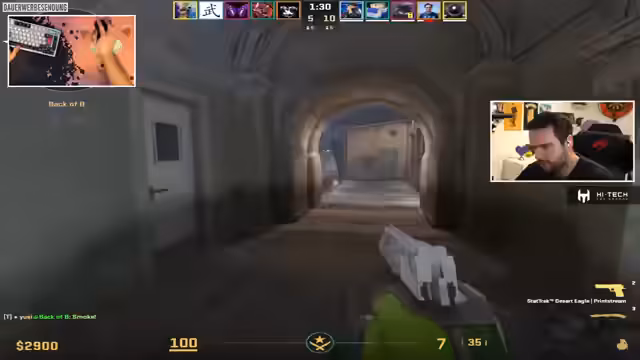 02:28:28Die Kommunikation mit dem Team ist entscheidend für den Erfolg. Der Streamer gibt klare Anweisungen wie 'Pop raus' und 'Flash B'. Auch die Positionierung wird diskutiert: 'Wir wollen eher in die Richtung. Wir müssen, das Problem ist, wir müssen close kommen am besten.' Strategische Elemente wie das 'B-Fischen' (Versuch, den letzten Gegner am B zu töten), das Legen von 'Smokes' zum Sichtschutz und der Einsatz von 'Flashes' zur Blendung werden oft ausgeführt und kommentiert.