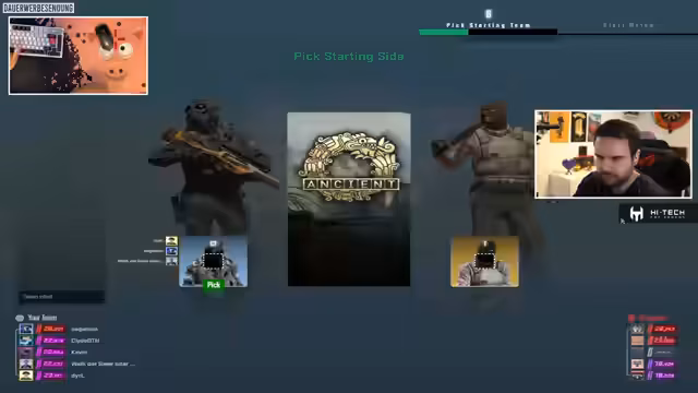 00:05:15Der Stream beginnt mit dem Ziel, im Rangsystem des Spiels voranzukommen. Der Streamer fährt mit der Premiere-Matchmaking-Warteschlange fort, um Elo zu gewinnen. Er ist momentan bei 82 Siegen und benötigt nur noch 43 weitere bis zum Jahresende, um sich sicher fühlen zu können. Es wird erwähnt, dass Kevins Elo nahe 29.000 liegt, was das Matchmaking gegen Gegner um 26.000 Elo, wie Everett, schwieriger macht. Am Anfang gibt es technische Probleme mit einem 20-sekündigen Verzögerung beim Teambenutzer.