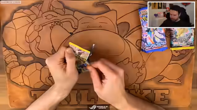 09:04:19Nachdem die Umfrage beendet ist, beginnt der Streamer mit der Eröffnung der Kartendecks. Er öffnet abwechselnd Packs von 'Mega Dream EX' und 'Ninja Spinner'. Während des Prozesses zeigt er einzelne Karten und kommentiert deren Seltenheit und Wert. Er erwähnt, dass er insbesondere nach bestimmten Karten wie Gengar, Vulpix und Vulnona sucht. Er unterhält sich dabei mit den Zuschauern über die Qualität der Karten und seine Sammlerziele.