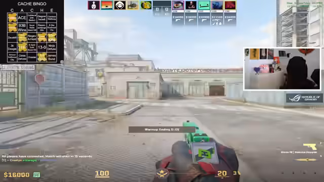 00:13:50Der Stream beginnt mit einem herzlichen Willkommen auf der eCache. Der Streamer plant, den ganzen Tag Cache zu spielen und hat eine Bingo-Karte vorbereitet, um das spannender zu machen. Er erklärt die verschiedenen Bingo-Ziele wie Knife-Kill, Collateral-Kills, Wallbangs und spezielle Map-Strategien. Das Ziel ist, die Karte im Laufe des Tages auszufüllen, mit optionaler Full-Bingo-Chance. Stream-Zuschauer werden gebeten, mitzuhelfen, abgeschlossene Bingo-Felder zu marken.