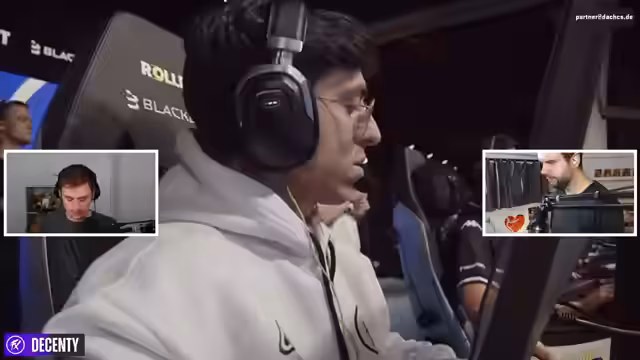 06:50:07Während der laufenden Aktionen auf der Map werden sowohl spielerische als auch technische Einblicke geteilt. George von NRG agiert dominant auf der Outside-Position. Es wird eine spezifische Technik zum schnellen und leisen Herunterlassen der Leiter auf dem Trainingsplatz erwähnt, die vom Spieler 'Fibu' als Talent angesehen wird. Parallel dazu gibt es eine technische Störung im Stream, ein unregelmäßiges Geräusch, das als störend empfunden wird und vom Streamer als Problem mit seinem Audio-Interface identifiziert wird.