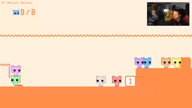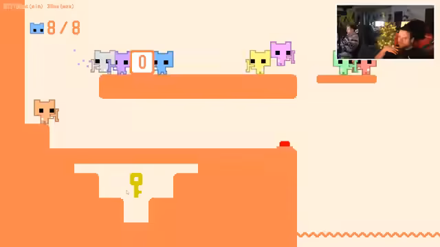 05:35:14Die Gruppe startet eine Runde Pico Park, wobei es zunächst technische Probleme beim Lobby-Join gibt. Nach Farbzuweisungen und Diskussionen über fehlende Teilnehmer beginnt das Spiel. Das Team kämpft sich durch Kooperations-Level wie Tetris-Modi und Waagen-Puzzles, wobei Kommunikationsprobleme und Trolle den Fortschritt erschweren.