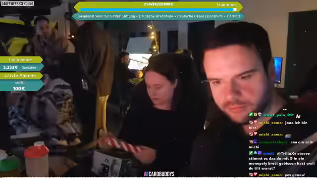 02:11:25Die Gruppe begann mit dem Öffnen der Zuschauerpakete, die im Rahmen eines Aufrufs zur Weihnachts-LAN eingesendet worden waren. Unter den Absendern waren Mishizama, Kunasha, Gigi Otherwise und SilentPain. Die Pakete enthielten unter anderem selbstgemachte Kekse und personalisierte Pokémon-Karten. Der Streamer betonte die emotionale Bedeutung der Geschenke und dankte den Fans für ihre langjährige Unterstützung, während die Pakete live vor der Kamera ausgepackt wurden.