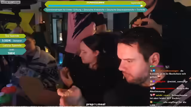 01:51:00Es erfolgte ein ausführlicher Shoutout an PrepMyMeal, die die LAN-Party mit 48 Kilogramm Essen versorgt hatten. Die Gerichte wie die Hähnchen-Fajita-Bowl, Proteinpasta mit Frischkäsesauce und Red Thai Curry wurden besonders hervorgehoben. Die Teilnehmer lobten die Qualität, und der Streamer verriet, dass fast alle Mahlzeiten bereits verzehrt worden waren. Ein Link mit 5% Rabattcode wurde im Chat geteilt, und Zuschauer wurden ermutigt, ihre Erfahrungen mit dem Service zu teilen.