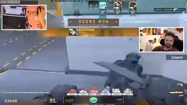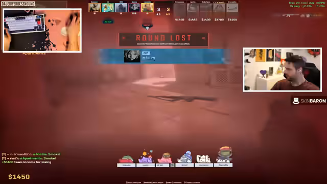 03:19:06Der Streamer startet mit mehreren Gewinnspielen, darunter eine Massagepistole und Skins wie die Desert Eagle Conspiracy. Es wird ein Skin-Giveway angekündigt, bei dem der Gewinner per Zufall ermittelt wird. Ein Partnerschaft mit Skinbaron wird vorgestellt, bei der der Code 'Trilux' für Käufer- und Verkäufergebührenvorteile genutzt werden kann. Ein Gewinner (Chargo) wird gezogen, der über einen Trade-Offer-Link informiert werden muss. Die Skinbaron-Aktion wird noch einmal betont, mit der Möglichkeit, zusätzliche Skins wie eine Desert Eagle Code Red zu gewinnen, und der Hinweis, dass PayPal als Zahlungsmethode wieder verfügbar ist.