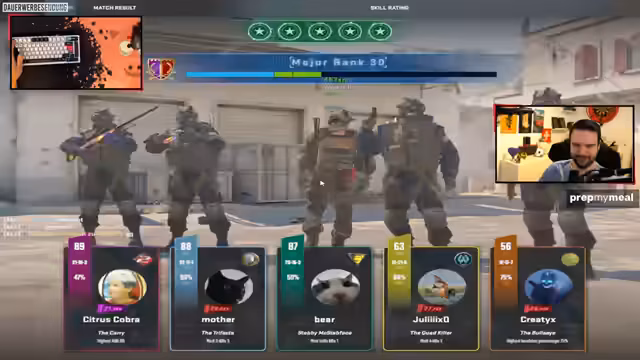 00:34:11Es wird über die Schwierigkeit gesprochen, das CS-Rating auf Face-It auf 25k hochzuspielen und dass Face-It mit Delay gestreamt werden müsste. Es wird über Medaillen in CSGO gesprochen und der Wunsch geäußert, alle Medaillen zu farmen, auch wenn es bedeutet, sich durch Premiere Season 3 zu quälen. Es wird überlegt, wie man eine A-Strategie durchführen kann. Es wird über einen Spieler diskutiert, der reißt und das Spiel negativ beeinflusst. Es wird überlegt, wie lange Mr. Food Service schon Abonnent ist und welche Badge er hat. Es wird über einen deutschen Semi-Pro gesprochen, der mit einem Cheater im Team gespielt hat. Es wird überlegt, was passiert, wenn man auf Skimpot draufgeht. Es wird über Darkside gesprochen, der die Razer-Boom-Slang repariert hat. Es wird über einen Schweden-Urlaub gesprochen und die günstigen Immobilienpreise in Schweden erwähnt. Es wird überlegt, ob man den Chat sehen kann, wenn man einen Permaban hat.