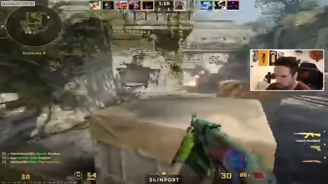 01:42:33Es gibt weiterhin intense Kämpfe um die Mitte, wobei die Gegner zunächst passiv bleiben. Spieler nutzen Flashes und Smokes, um das Spielfeld zu kontrollieren. Es werden verschiedene strategische Pläne diskutiert, wie man die Mitte nehmen oder Bomben einsetzen kann. Ein Spieler erwägt, einen Molotov einzusetzen, um Gegner zu verlangsamen.
