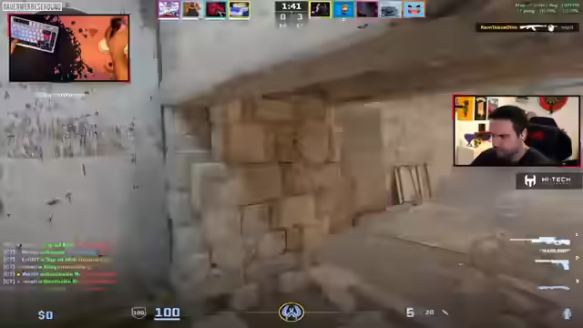 00:25:50Der neue Rechner kommt nach Duisburg, der aktuelle wird hierhin versetzt. Erwartungen an die FPS-Leistung des neuen Rechners werden diskutiert, wobei gehofft wird, 450 bis 500 FPS onstream zu erreichen, was in Kombination mit einem 480 Hertz OLED-Monitor optimal wäre. Es wird überlegt, eine halbe Runde zu spielen und dann zu shoppen. Es wird vermutet, dass die Gegner jede einzelne Demo analysiert haben, da sie bereits vor Wochen im Chat nach dem Spieltermin gefragt haben. Es wird über First Time Messages von Zuschauern gesprochen, die ankündigen, das Spiel zu analysieren. Es gibt Kommentare zu den Spielzügen der Gegner und den eigenen Fehlern. Es wird ein Ohrwurm von einem Lied erwähnt und Witze darüber gemacht. Es wird überlegt, ob ein Gegner Cheats benutzt, basierend auf Beobachtungen im Spiel. Es werden verschiedene Spielsituationen kommentiert, darunter das Fangen von Gegnern in Smokes und das Platzieren der Bombe.