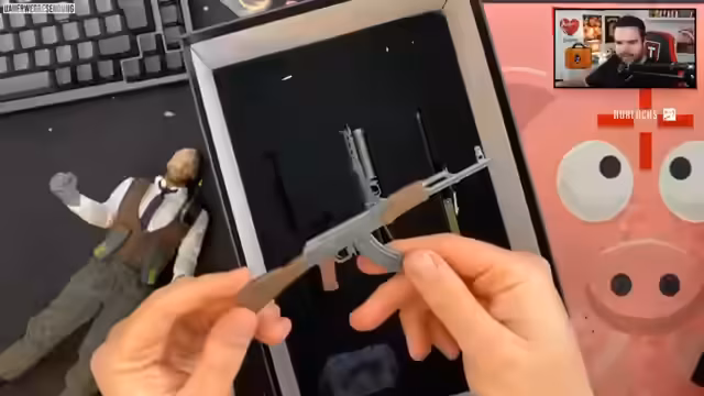 00:33:22Nachdem die ersten Merchandise-Stücke besprochen wurden, zeigt der Streamer weitere, teilweise unerwartete Artikel. Dazu gehören eine Pokémon-Karte mit chinesischem Design, ein offizieller Counter-Strike-Rucksack mit praktischen Features und eine besonders coole Smoke-Granade als Trinkflasche. Das Highlight des Pakets ist jedoch eine teure, handbemalte und limitierte Collectible-Figur, die für über 200 Euro gekostet hat und weltweit nur auf 1000 Stück begrenzt war. Der Streamer drückt seine große Freude über das seltene Sammlerstück aus, das ihn an seine Zeit mit dem Spiel erinnern soll.