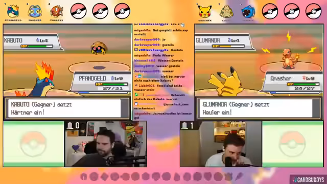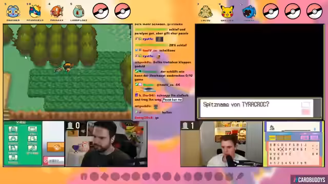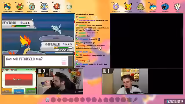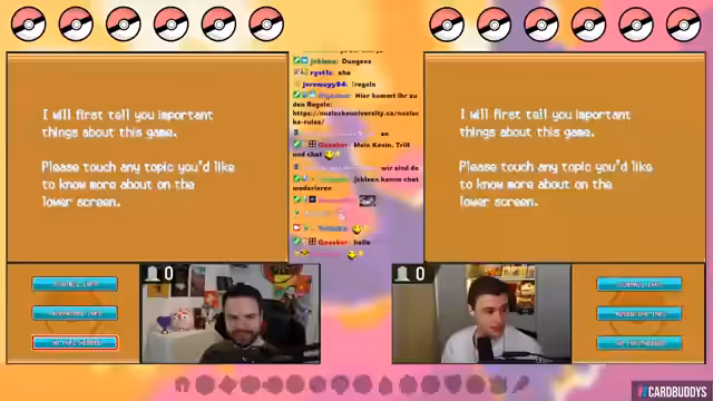 01:18:23Der Stream beginnt mit einer Vorstellung der Nuzlocke-Regeln und des Teams. Der Streamer fängt ein Pikachu, das als Starter dient und den Spitznamen 'Fangeld Hunter' erhält. Das Team wird um ein auf Route 29 gefangenes Knilz (auf Englisch 'Hoothoot') erweitert. Es werden die individuellen Values (IVs) der Pokémon besprochen, wobei das Pikachu außergewöhnlich hohe IVs besitzt. Gleichzeitig startet der Co-Streamer Leonard und hat den Starter Igelava erhalten. Wichtig ist die 'SOULLINK'-Regel: das Verhältnis der Starter ist so gekoppelt, dass eines stirbt, wenn das andere aus dem Kampf geschickt wird.