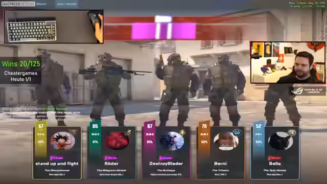 01:37:22Innerhalb des Teams gibt es Momente der Frustration, insbesondere als Armin in seiner Cam deutlich wütend reagiert. Dies führt zu einer angespannten Atmosphäre im Match. Der Streamer bemängelt, dass seine Teammates nicht wirklich als Einheit agieren und kritisiert deren Positionierung als inadäquat. Trotzdem besteht der Streamer darauf, das Spiel weiter zu führen und Fehler zu analysieren, nachdem die Runde vorbei ist.