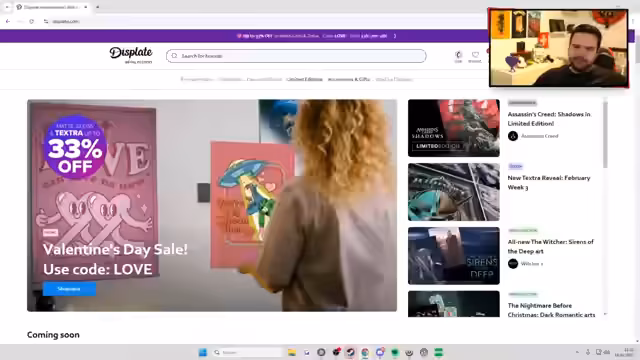 08:55:29Der Streamer gibt einige Trackmania Club-Access-Pässe für drei Monate an das Publikum weiter und erklärt, wie man diese einlösen kann. Es wird erwähnt, dass man damit den vollen Zugang zum Spiel erhält und versteckte Modi freischalten kann. Anschließend bewirbt der Streamer Displate mit einem aktuellen Angebot, bei dem es 25% Rabatt auf ein gekauftes Display und 35% bei zwei gekauften Displays gibt. Er zeigt verschiedene Motive, darunter Assassin's Creed und The Walking Dead, und erwähnt, dass einige davon limitiert sind.
