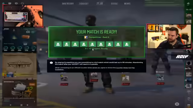 00:06:53Zu Beginn des Streams wird das Wiedereinstiegs-Feeling nach drei Wochen CS-Pause thematisiert. Der Streamer ist skeptisch, da sein Rang aufgrund von Inaktivität verloren gegangen ist. Das Ziel ist klar, zuerst der Rang wiederhergestellt werden muss, um überhaupt an der neuen Season teilnehmen zu können, da sie nach dem Major enden soll. Das Matchmaking soll direkt erfolgen, um den Rang zurückzuholen, und man ist sich unsicher über den eigenen Leistungsstand nach langer Zeit.