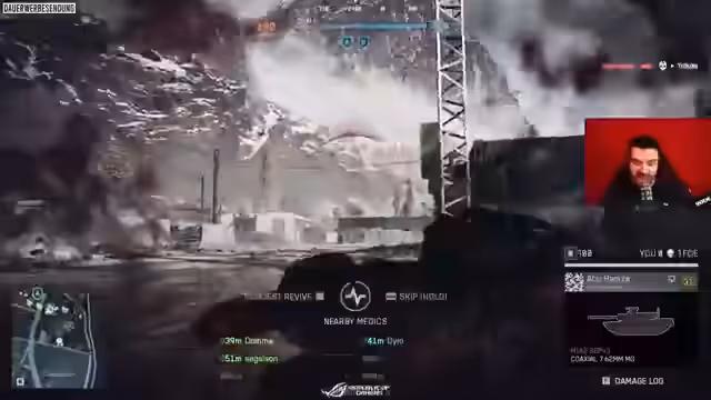00:29:13Der Streamer betont die Bedeutung von Teamwork und bittet wiederholt nach Medic-Unterstützung von einem Mitspieler namens 'DJ Leistenbruch'. Er versucht, strategisch mit Respawn-Beacons vorgehen und versucht, kontrollierte Zonen auf der Karte zu halten. Er kritisiert die unübersichtliche Kartenführung und die Häufung von Panzern, die das Kampfgeschehen unübersichtlich machen. Trotz der widrigen Umstände und der Überforderung durch den Modus und die Karte, versucht er, weiterzukämpfen und seine Shotgun-Herausforderung durch gezieltes Nahkampf-Angreifen zu meistern.