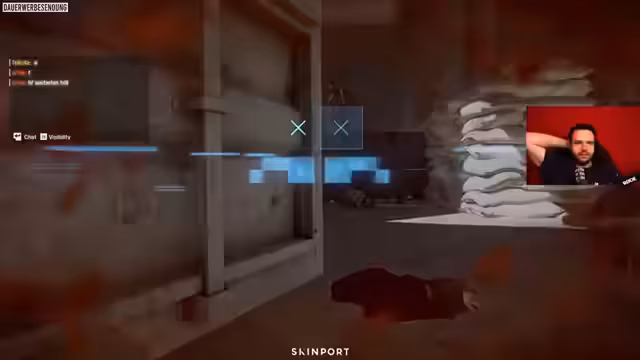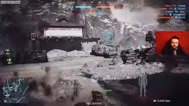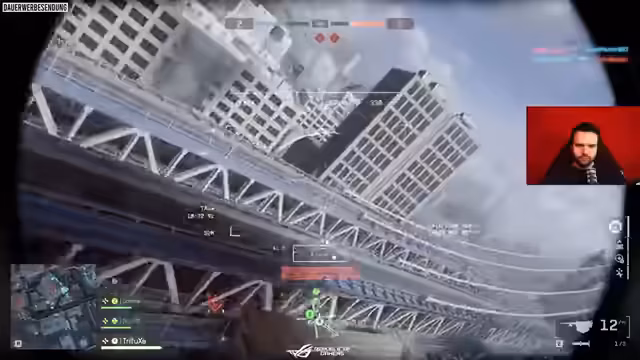 05:44:17Ein weiterer Vorstoß mit dem Helikopter führt zu einer dramatischen Situation. Der Pilot 'Max' fliegt den Heli in einen Hangar, woraufhin dieser stecken bleibt. Die Taktik scheitert kläglich, und das Team leidet unter dem Verlust des Helikopters und der damit verbundenen Feuerkraft. Der Kommentator ist zunehmend frustriert über die Fehler des Piloten und die verlorene Kontrolle über das Spielgeschehen. Die feindliche MG am Helikopter wird als extrem effektiv beschrieben, was die Schwäche der eigenen Verteidigung bei dem gescheiterten Manöver unterstreicht.