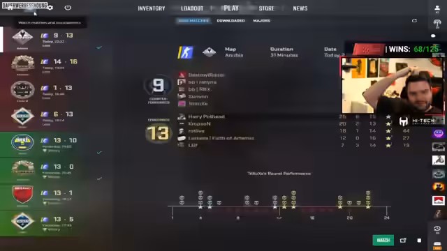 00:29:16Der Streamer und sein Team vermuten, dass ein Gegner, 'Harry Potter', mit Aimbot cheater. Dieser soll mehrere Accounts besitzen, die bereits gebannt wurden. Die Situation führt zu Frustration, da sie trotz guter Leistung und erreichter Ränge im Matchmaking ständig auf Cheater treffen. Die Sorge, dass es wegen der vielen Cheater eine Challenge wird, 125 Spiele zu gewinnen, wird laut geäußert.
