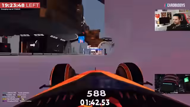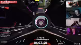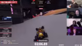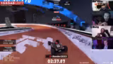 00:57:37Nach einigen schwierigen Passagen, insbesondere dem bekannten Loch und einem nachfolgenden Sprung, schaffte es der Streamer, einen schnellen Durchlauf von 5 Minuten und 53 Sekunden zu erzielen. Trotz eines Crashes am Ende war dies ein persönlicher Höhepunkt und ein Zeichen für Fortschritt. Der Fokus lag auf dem Erlernen der Streckenabschnitte, besonders im komplizierten Wasser- und Eis-Teil.