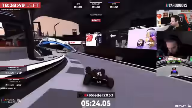 04:34:56Es findet ein Hochspannungsrennen statt, bei dem eine Pizza-Wette im Mittelpunkt steht. Der Streamer feuert Armin an, der eine persönliche Bestleistung (PB) erzielen soll. Nach mehreren kritischen Momenten und fast verpatzten Manövern schafft Armin es schließlich, die Runde um mehrere Sekunden zu verbessern und das Rennen für sich zu entscheiden. Die Wette gilt damit als gewonnen, und die Pizza ist gesichert.