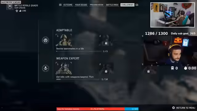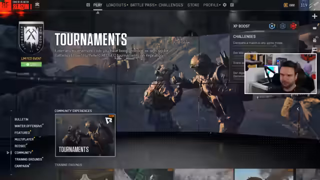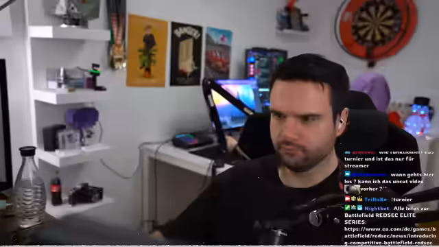 00:14:54Der Streamer wechselt nach kurzer Unterhaltung zu Battlefield und bereitet sich auf das REDSEC-Turnier vor. Er geht ins Voice-Chat mit den Jungs, um Turnierdetails zu besprechen. Es wird erklärt, dass ein Lobby-Code notwendig ist, der manuell eingegeben werden muss. Die Turnier-Registrierung über Repeat.gg wird erwähnt, wobei Probleme bei der Anmeldung für einige Teilnehmer diskutiert werden. Der Streamer startet das Spiel neu, um Verbindungsprobleme zu beheben, und betont, dass vor dem Lobby-Join ein Neustart erforderlich ist. Er nimmt Drops in den Streamtitel auf, da exklusive Belohnungen für Zuschauer aktiviert wurden.