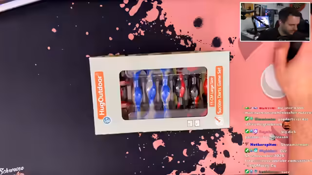 05:51:14Im Mod-Adventskalender (30€ Amazon-Guthaben pro Mod) wird ein Set mit Sauggeschossen ('Suction Darts Game') gezogen. Trill erklärt die Spielregeln: Es ähnelt Darts oder Pool, wird an Tisch oder Wand gespielt und nutzt Saugnäpfe. Der Mod hat das Set für bis zu vier Spieler gekauft, was Trill für LAN-Partys geeignet erscheint.