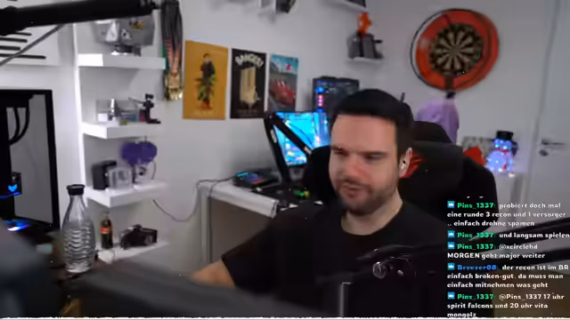 01:19:22Nach technischen Überprüfungen und Merch-Entpacken bereitet sich das Team auf die ersten sechs Turniermatches vor. Der Streamer bestätigt die Teilnahme von Berni, Blutig und Kreatix im Voice-Chat. Es wird über die maximale Anzahl der täglichen Matches (sechs Spiele) diskutiert. Der Streamer startet eine Aufnahme und optimiert sein Setup für die Live-Übertragung der Spiele. Während des Countdowns werden kurzfristige Anweisungen für die Squad-Positionierung und Loot-Strategien wiederholt.