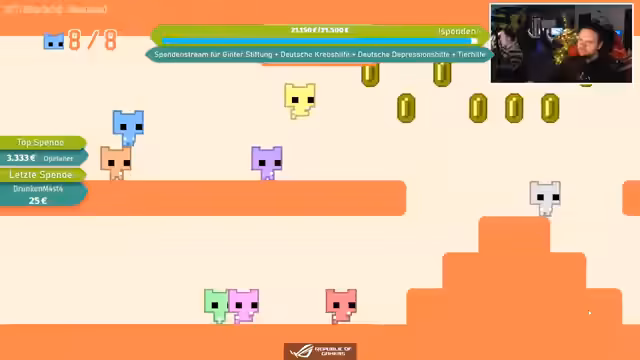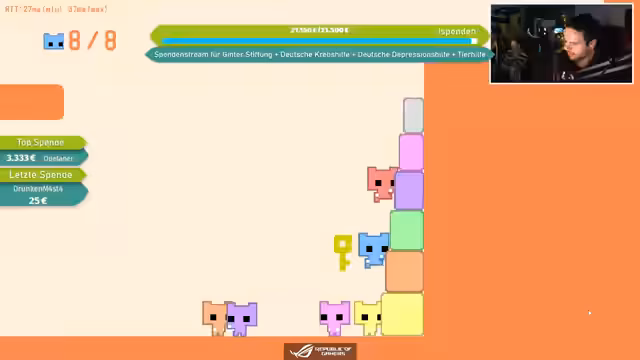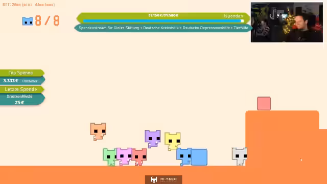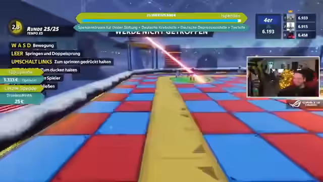 03:16:17Nach erfolgreichem Lobbyjoin wurde Pico Park gespielt, wobei das kooperative Gameplay für chaotische Szenen sorgte. Spieler mussten gemeinsam Rätsel lösen, Schlüssel transportieren und sich abstimmen – was aufgrund mangelnder Koordination oft scheiterte. Besonders die Level mit Schiebemechanik und Treppenkonstruktionen führten zu frustrierten aber auch lustigen Reaktionen. Einige Teilnehmer wie Marc oder Tom waren wiederholt Gegenstand von Späßen aufgrund ihres Spielverhaltens.