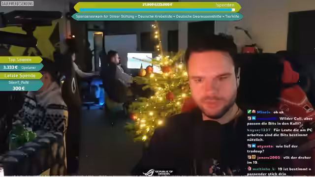 04:50:11Im Mod-Adventskalender wurde eine Massagepistole im Wert von 30 Euro verlost, gesponsert von Holy. Zuschauer konnten sich über den Code 'Trillux' für 10% Rabatt bei Holy einklagen. Das Gerät erwies sich als überraschend beliebt, besonders nachdem ein Mod es erfolgreich zur Entspannung nutzte. Der Gewinner 'The Falter' wurde im Livestream ermittelt, während auf die Weihnachtsangebote von Holy verwiesen wurde.