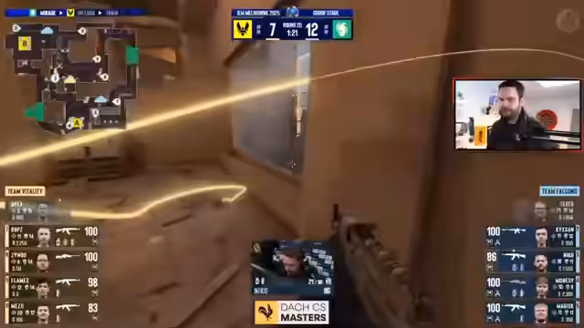 01:26:03Auf der Map Mirage ging es in die Overtime, die letztendlich von Vitality knapp gewonnen wurde. Der Streamer bewertete das Match als sehr spannend und nahm einen leichten Performance-Unterschied zwischen den Star-Spielern Monesy von den Falcons und ZywOo von Vitality wahr, wobei ZywOo in dieser Map herausragende Hits zeigte. Die Falcons mussten ein Comeback spielen, was ihnen gelang, während Vitality Fehler machte, die sie fast das Spiel kosteten. Der Fokus lag auf der mentalen Stärke und der taktischen Fähigkeit der Falcons, sich zurückzukämpfen.