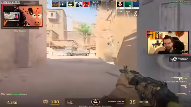 01:07:16Es kommt Frustration auf, da der Streamer wiederholt durch Smoke getötet wird. Er beschwert sich über einen Spieler namens Revenge, der als 3K-Faced-Elo-Türke bezeichnet wird und über 8000 Faceit-Matches hat. Dessen Account wurde am 27. März 2021 erstellt. Diese Zahl wird als krankhaft angesehen. Der Streamer vermutet, dass der Spieler einen zweiten Bildschirm für fragwürdige Zwecke nutzt. Es wird überlegt, ob man nochmal mit 2B versuchen soll. Es werden verschiedene Spielstrategien besprochen, wie das Pushen von Lower oder das Abwerfen von Utility in der Mitte. Der Streamer ärgert sich über schlechtes Timing und krankes Timing. Er wird krank getimed. Es wird überlegt, ob man Mitte durchspringen kann.