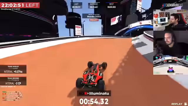 03:04:20Im Mittelpunkt steht die Planung für ein bevorstehendes 24-Stunden-Rennen, bei dem sechs Fahrer im Schichtsystem an einem Auto teilnehmen. Der Streamer erläutert die komplexen Regeln, die eine Rotation der Fahrer innerhalb von 8-Stunden-Blöcken vorschreiben. Währenddessen wird ein Mitspieler namens Armin allein im Auto zurückgelassen, was zu einer humorvollen Verwirrung führt, da niemand ihm im Teamspeak erreichbar ist. Die Organisation wird als entspannt beschrieben, obwohl die körperliche Belastung, insbesondere durch potenziell eingeschränkte Lenkbewegungen, ein Thema bleibt.