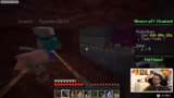 00:51:31Das Team entdeckt ein Nether Portal und beschließt, in den Nether zu reisen. Auf dem Weg dorthin stoßen sie auf einen Pufferfisch, der für die Zähmung eines Nautilus-Mobs benötigt wird. Sie experimentieren mit der Zähmungsmechanik, die scheinbar durch einen Rechtsklick mit dem Pufferfisch erfolgen muss. Im Nether angekommen, untersuchen sie die Umgebung auf nützliche Ressourcen wie Roter Sand und Glowstone, während sie weiterhin auf die Koordination achten müssen, um nicht in Lava oder in andere Gefahren zu geraten.