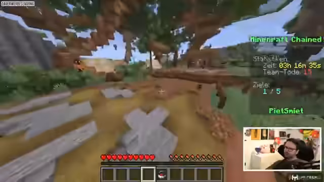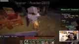 02:30:27Das Team beschließt, Türme zu bauen, um die Umgebung besser erkunden zu können. Armin versucht, mit Enderperlen aus gefährlichen Situationen zu entkommen. Die Spieler treffen auf verschiedene Strukturen wie Dörfer und versuchen, dort nützliche Items zu finden. Sie haben jedoch Schwierigkeiten, sich schnell fortzubewegen und werden oft von Monstern angegriffen.