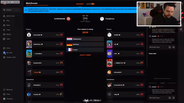 01:07:39Während des Spiels treten technische Probleme auf, die zu einem ungewöhnlichen Abbruch führen. Ein Spieler wird aus der Verbindung gekickt, ohne dass Schaden entstanden ist. Die Spieler sind sich nicht einig, ob es sich um einen Disconnect oder einen Technical handelt. Es kommt zu Verwirrung und Diskussionen über die richtige Vorgehensweise, um den Support zu kontaktieren. Die Gegner scheinen nicht auf Deutsch zu kommunizieren, was zusätzliche Verwirrung stiften.