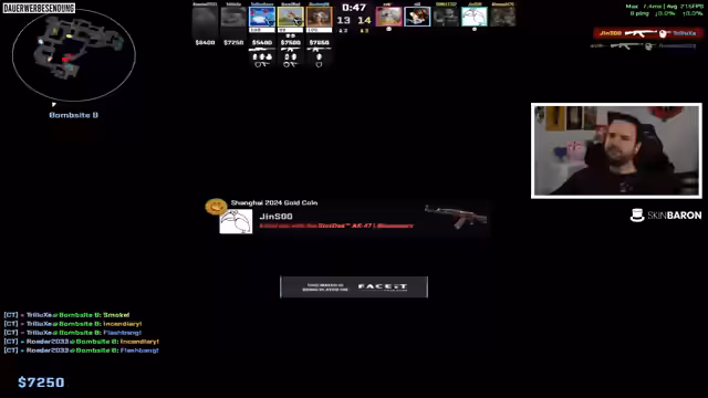 02:12:55Die Spieler analysieren den aktuellen Spielverlauf und diskutieren über ihre Ausrüstung. Es geht um das Management der Ressourcen, wie z.B. das Wischen von Smoke-Granaten und das Platzieren von Bomben. Die Spieler strategisieren, wie sie effektiv in die Runde gehen können, während sie auch die Ressourcen des Gegners scannen. Sie diskutieren über die Wahrscheinlichkeit, dass der Gegner Full-Buy hat und passen ihre Taktiken entsprechend an.